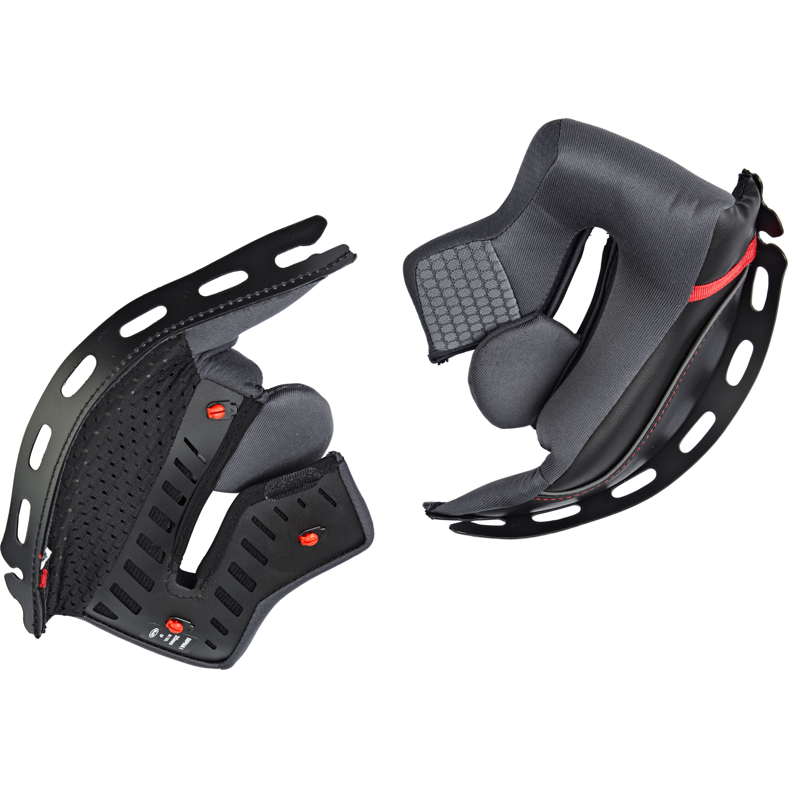 - Installation: Die Wangenpolster werden in der Regel mit Druckknöpfen oder Klettverschlüssen im Helm befestigt. Achte darauf, dass sie richtig einrasten und fest sitzen.