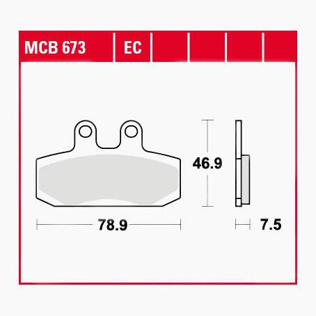 Größe | Bremsbeläge organisch MCB673 78,9×46,9×7,5mm |